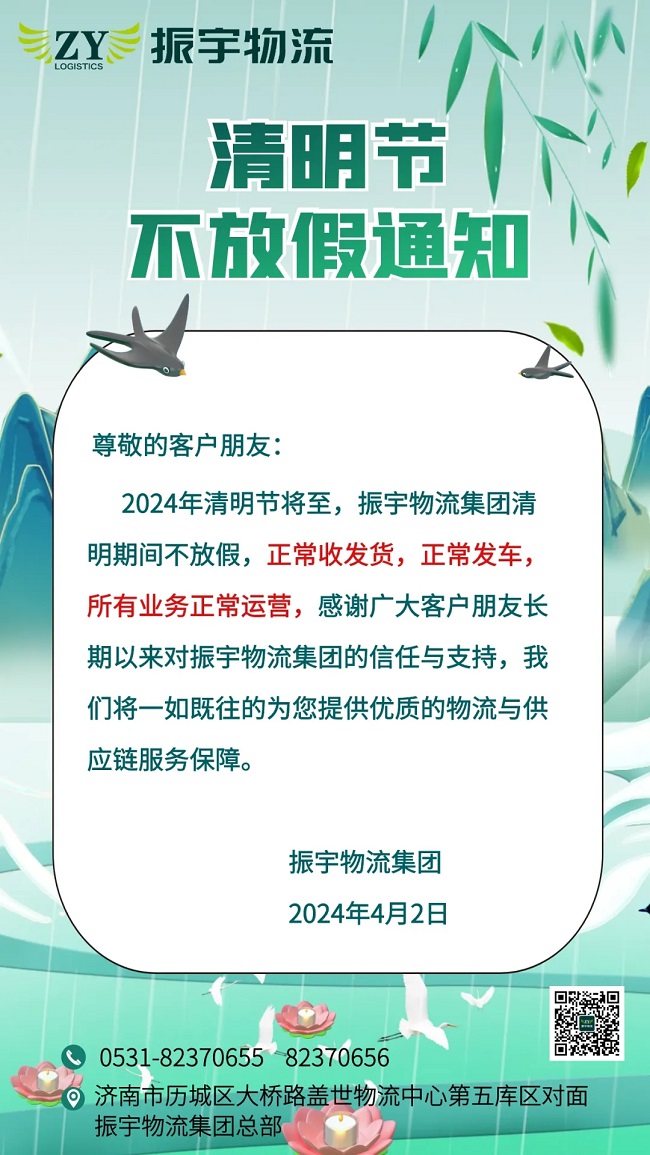 振宇物流集團丨清明期間正常運營通知
