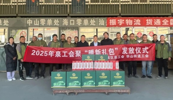 寒天暖意,工會同行。爲深入踐行市、區總工會關於(yú)關心關愛(ài)新就業形态勞動者的工作部署,12月8日,華山街道工會“泉工會聚‘暖新禮包’發放活動”走進振宇物流集團,将暖心關懷精準送達基層一線。華山街道黨工委副書記連東坡、工會副主席王曉鳴一行深入企業,爲新就業形态勞動者親手送上滿載關懷的“暖新禮包”,切實讓職工感受到工會組織的溫暖與力量。振宇物流集團董事長張憲振、總經理孫松、工會主席張貴強全程陪同,對華山街道及工會領導的關心支持表示衷心感謝。