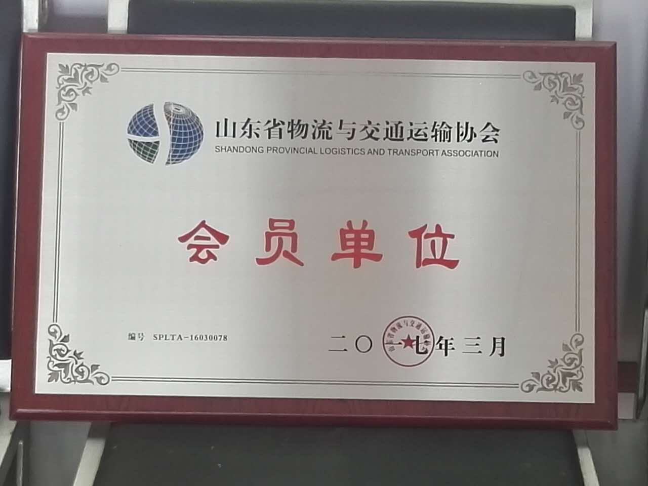 熱烈祝賀振宇物流成爲山東省物流與交通運輸協會會員單位