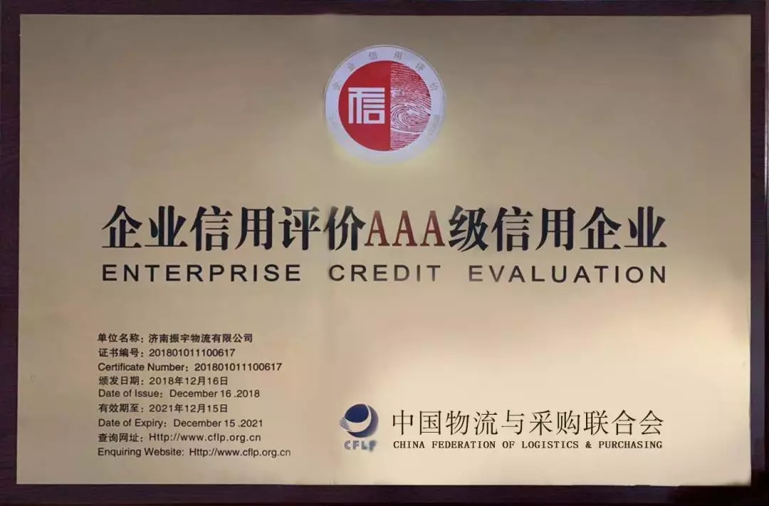 濟南振宇物流有限公司:國家3A級信用企業